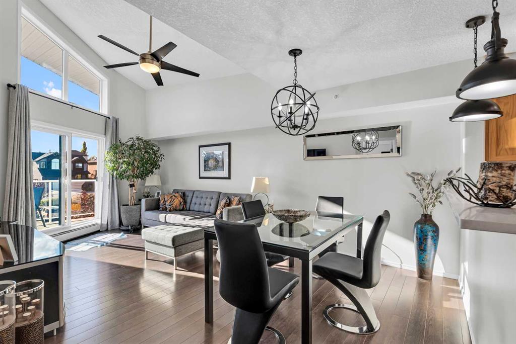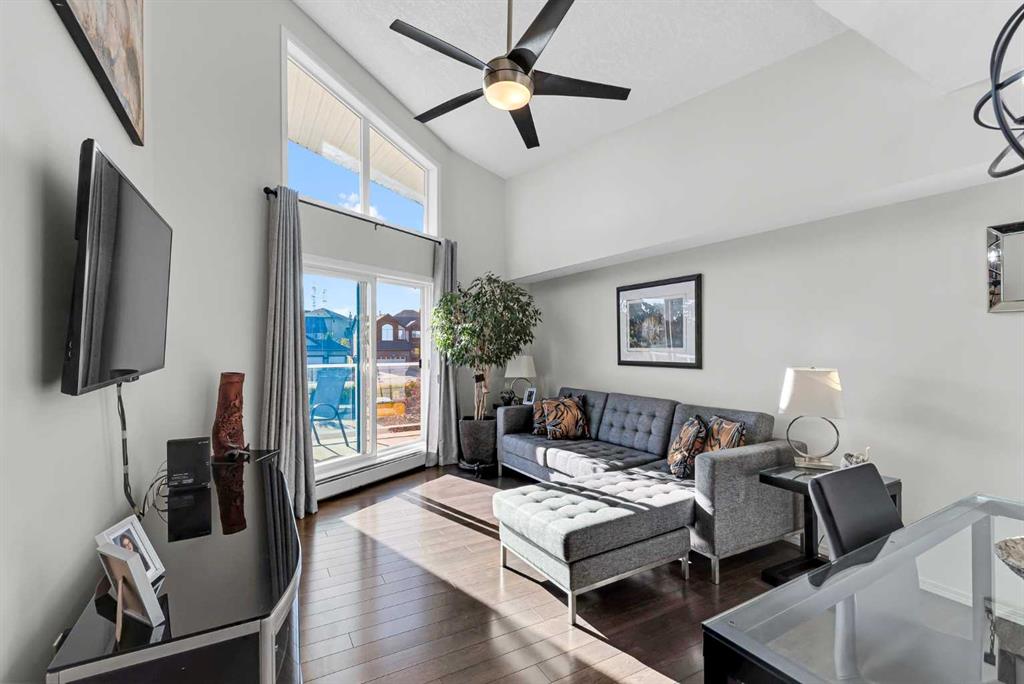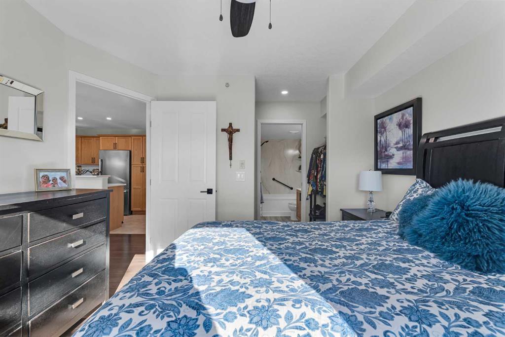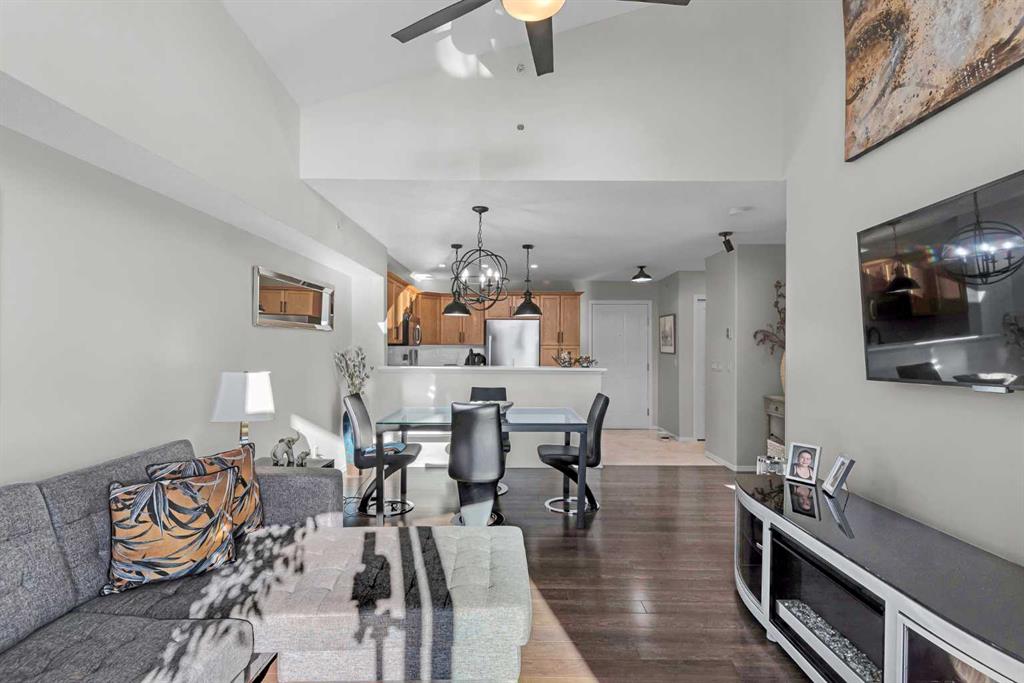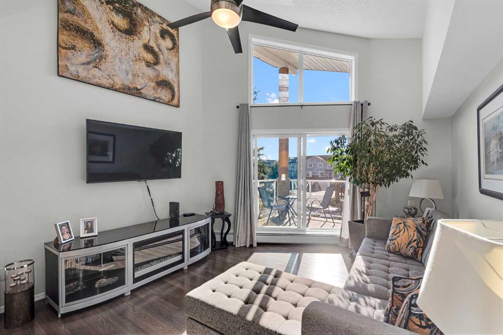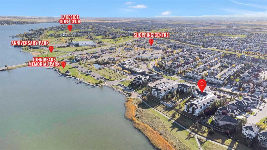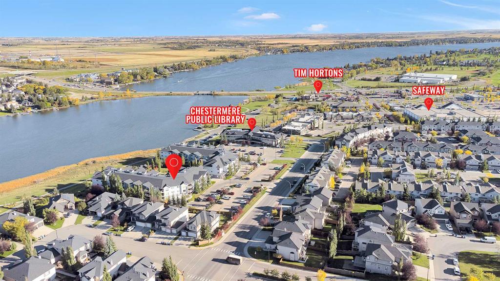Discover the ultimate lakeside lifestyle in this beautifully renovated, top-floor one-bedroom, one-bathroom condo at the exclusive Bay Club Chestermere. With soaring 13-foot ceilings and large living room windows, this home is bathed in natural light, creating a bright and welcoming atmosphere. Enjoy a spacious layout, including a large deck with a gas BBQ hookup. The condo has been thoughtfully upgraded with modern finishes, featuring plank flooring in the living room and bedroom, fresh paint, textured ceilings, new light fixtures, fans, black hardware, and doorknobs. The kitchen dazzles with new stainless-steel appliances (stove, dishwasher, fridge), quartz countertops, a stylish backsplash, an apron-front single sink, and updated faucets and plumbing. The fully renovated bathroom includes a new bathtub and surround, modern faucets, and updated plumbing fixtures. Additional upgrades include new window screens, black curtain rods, and a new front door lock. Convenience is key with in-unit laundry (washer and dryer included), titled underground parking, and a spacious titled storage unit. Low condo fees grant access to amenities like a library/recreational room, mini gym, and exclusive private access to Chestermere Lake for Bay Club residents—perfect for water lovers. Located steps from shops, dining, and activities, this clean, quiet, and well-ventilated complex offers unmatched convenience. Don’t miss this rare chance to own a stunning lakeside retreat. Schedule your private viewing today! It’s a move you’ll be glad you made.