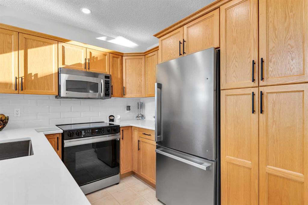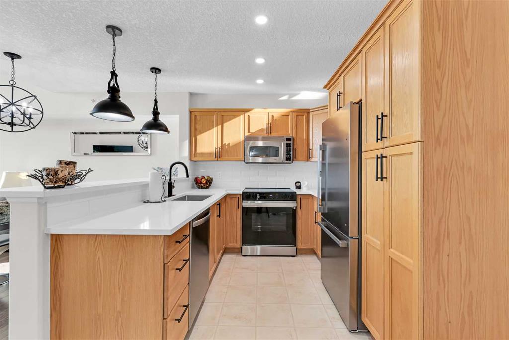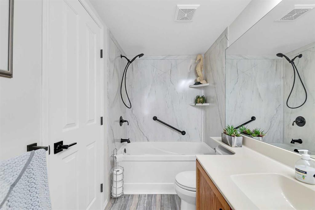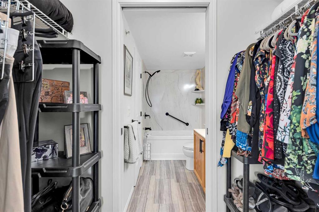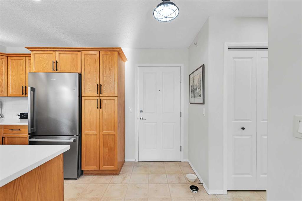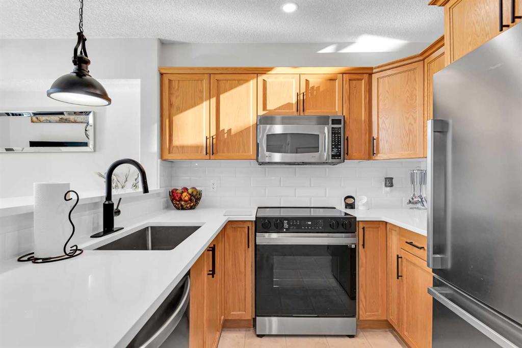 Discover the ultimate lakeside lifestyle in this beautifully renovated, top-floor one-bedroom, one-bathroom condo at the exclusive Bay Club Chestermere. With soaring 13-foot ceilings and large living room windows, this home is bathed in natural light, creating a bright and welcoming atmosphere. Enjoy a spacious layout, including a large deck with a gas BBQ hookup. The condo has been thoughtfully upgraded with modern finishes, featuring plank flooring in the living room and bedroom, fresh paint, textured ceilings, new light fixtures, fans, black hardware, and doorknobs. The kitchen dazzles with new stainless-steel appliances (stove, dishwasher, fridge), quartz countertops, a stylish backsplash, an apron-front single sink, and updated faucets and plumbing. The fully renovated bathroom includes a new bathtub and surround, modern faucets, and updated plumbing fixtures. Additional upgrades include new window screens, black curtain rods, and a new front door lock. Convenience is key with in-unit laundry (washer and dryer included), titled underground parking, and a spacious titled storage unit. Low condo fees grant access to amenities like a library/recreational room, mini gym, and exclusive private access to Chestermere Lake for Bay Club residents—perfect for water lovers. Located steps from shops, dining, and activities, this clean, quiet, and well-ventilated complex offers unmatched convenience. Don’t miss this rare chance to own a stunning lakeside retreat. Schedule your private viewing today! It’s a move you’ll be glad you made.