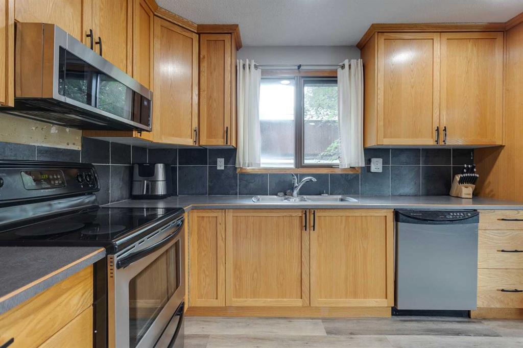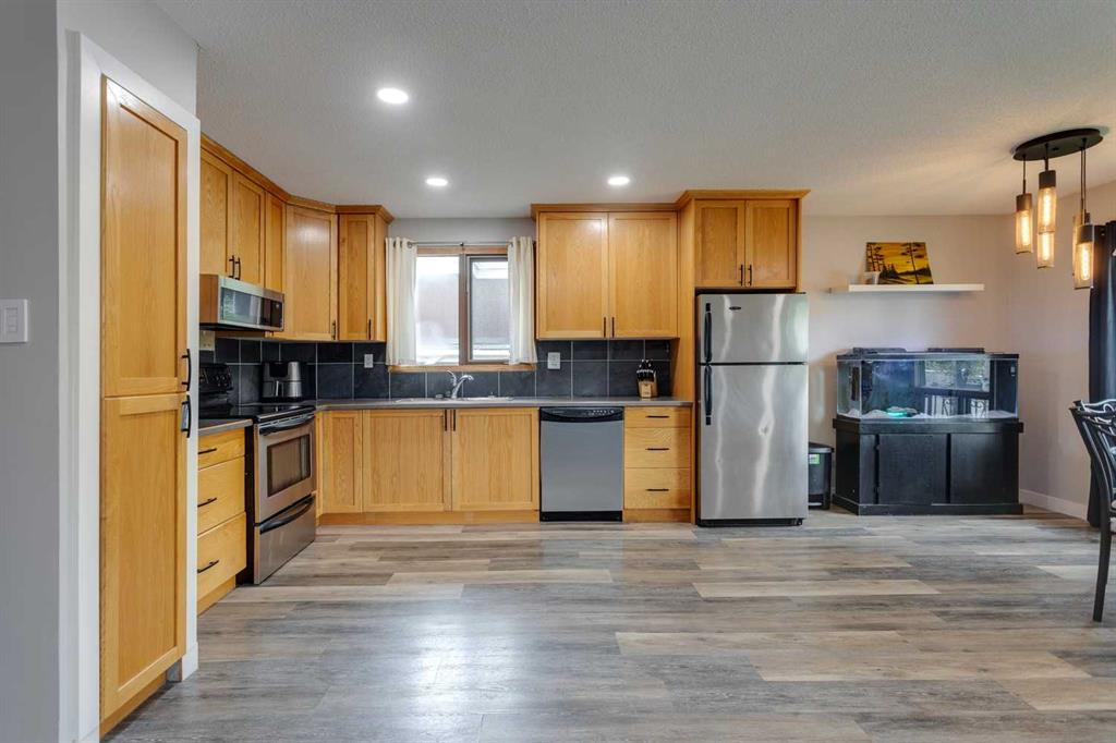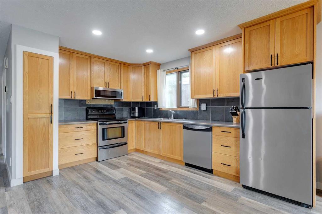Explore this exceptional investment property, perfectly positioned for convenience near downtown, schools, shopping, and public transit. Upstairs, the main living area features a stylish open-concept kitchen, a cozy dining nook, and a spacious family room bathed in natural light. It also includes two generous bedrooms, convenient laundry facilities, and a 4-piece bathroom. The lower level, currently configured as an illegal suite, offers flexible living arrangements and is complete with a separate entrance, a fully equipped kitchen, two roomy bedrooms, a bathroom, and its own laundry. This home has undergone recent renovations. The main level includes all-new flooring (including subfloor), doors, trim, blown-in insulation, an upgraded bath fan, a new microwave, fresh paint, and smart LED lighting (Alexa and Siri capable). The lower level also benefits from fresh updates, including new floors, carpet, underlay, trim, doors, and an upgraded bath fan. The exterior boasts mature trees, a dedicated garden space, and a single-car garage. A key highlight: both current tenants are exceptional and very accommodating. This is an ideal, turn-key addition to your real estate investment portfolio. Contact us today to schedule your private tour.