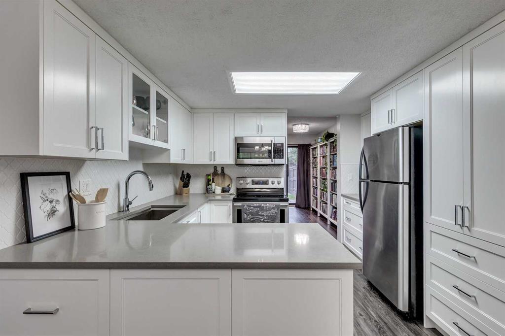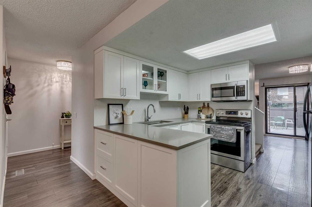 Discover your dream home in this beautifully updated townhome, perfectly situated in the sought-after community of Palliser. As you enter, you're immediately struck by the bright and expansive living room, where large windows flood the space with natural light. This generous area expands outdoors to a PRIVATE BACKYARD highlighted by custom cedar planters and a beautiful stamped concrete patio - providing a wonderful setting for gathering with friends and family. The heart of the home, the updated kitchen, is both stylish and functional, featuring shaker-style cabinetry, custom corner pull out storage, sleek quartz countertops, stainless steel appliances, and a large island with an undermount sink and plenty of storage. An updated two-piece powder room completes the main level. Upstairs, you'll find three generous bedrooms, including an oversized primary suite with ample room for a king-size bed. Unwind after a long day in the beautifully updated 4-piece bathroom, complete with a soaker tub and full tile shower. The basement offers additional storage, a laundry area, and a partially finished space, ready for your personal touch. Beyond the home itself, the location is a significant draw. Residents benefit from unrivaled accessibility to amenities and a seamless commute thanks to the new ring road, the expansion of 14th Street SW, and Bus Rapid Transit (BRT). The neighborhood also stands to gain from the many amenities associated with the Buffalo Run/Taza development on the Tsuut'ina Nation, making this a truly rare and valuable property.