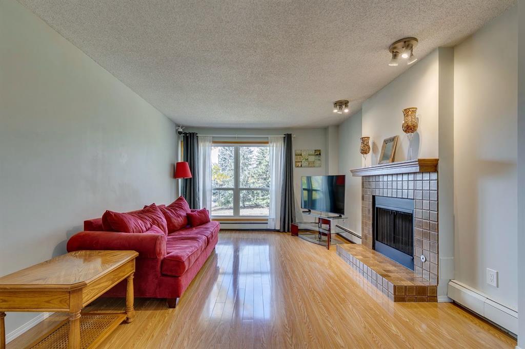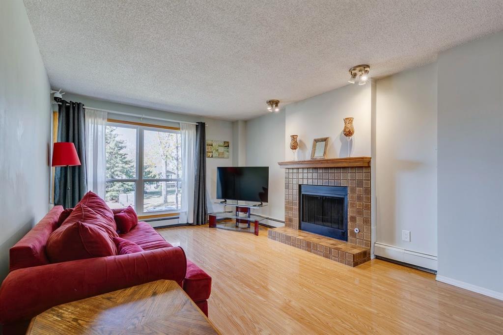 AMAZING VALUE! Located in the extremely desirable LAKE community of MIDNAPORE, this END UNIT 2 bed 1 bath apartment with WEST and EAST exposure has everything you'd ever want in a home. Located on a stunning tree lined street, you're just 50 steps from FISH CREEK PARK, a short walk/drive to multiple schools and Midnapore Lakes south entrance that's open year round. This unit itself is well designed with a fair sized kitchen that opens into your formal dining area and generous living space. With West and East windows welcome you with sunlight throughout the main living space. Complimented by a beautiful wood burning brick fireplace, this living room has a practical layout for furniture placement. Off the living room you have a private deck. Separate from the main living space, you have two generous bedrooms with west facing windows. The unit is complete with a 4 piece bathroom, in-suite laundry and an upgraded electric panel that most units do not have. Out of the unit you have a large storage locker, off street parking and plenty of extra parking along the blvd. This unit is move in ready while being surrounded by all Midnapore has to offer.