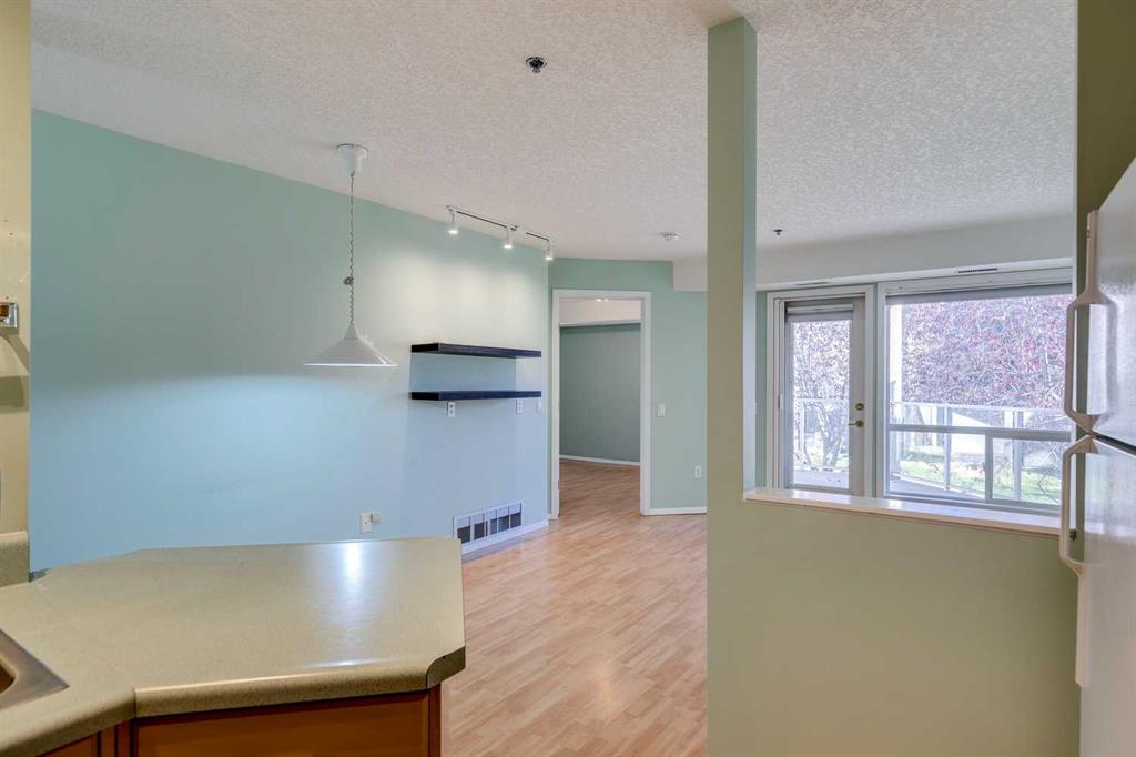 Welcome to Dana Village, a highly sought-after and vibrant 55+ complex offering the perfect blend of comfort, convenience, and an active, connected lifestyle in Calgary’s desirable west side. Step inside this wonderful unit and be greeted by a bright, open-concept layout. Durable laminate flooring flows seamlessly through the main living areas, guiding you into the spacious kitchen. This area is perfectly designed for everyday living and effortless entertaining, featuring ample counter space and cabinetry that opens directly onto the dining and living room—a wonderful space for hosting guests. Off the living room is one of the unit's best features: a large, covered, vinyl-wrapped balcony. This serene space overlooks greenspace, providing the ideal spot to enjoy your morning coffee or peaceful evenings. The thoughtful design continues into the very spacious bedroom that boasts a handy walk-through closet that leads to the full 3-piece bathroom, which also includes a second door for convenient guest access. The unit is complete with a large in-suite storage room, convenient stackable washer and dryer and secured underground parking and storage. Dana Village is more than just your next home—it's a strong sense of community and an amazing lifestyle! Residents enjoy a full social calendar and unparalleled access to exceptional facilities, including a reading room/library, games room, common/social room, fitness centre, woodworking shop, and a car wash bay. The complex is also incredibly well-located, with shopping and amenities very close (Westhills and Signal Hill), offering quick, easy access to transit, the LRT, downtown, and the mountains. Don't miss this opportunity to join one of Calgary’s most welcoming and well-equipped adult living buildings.