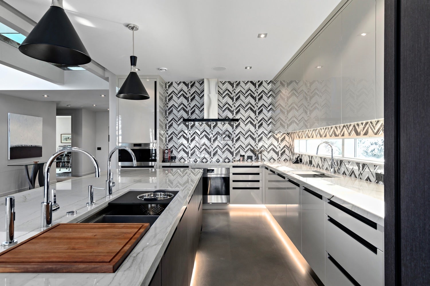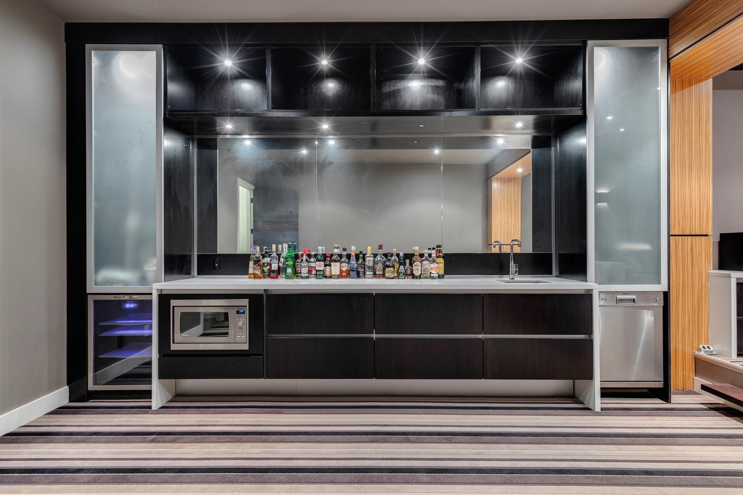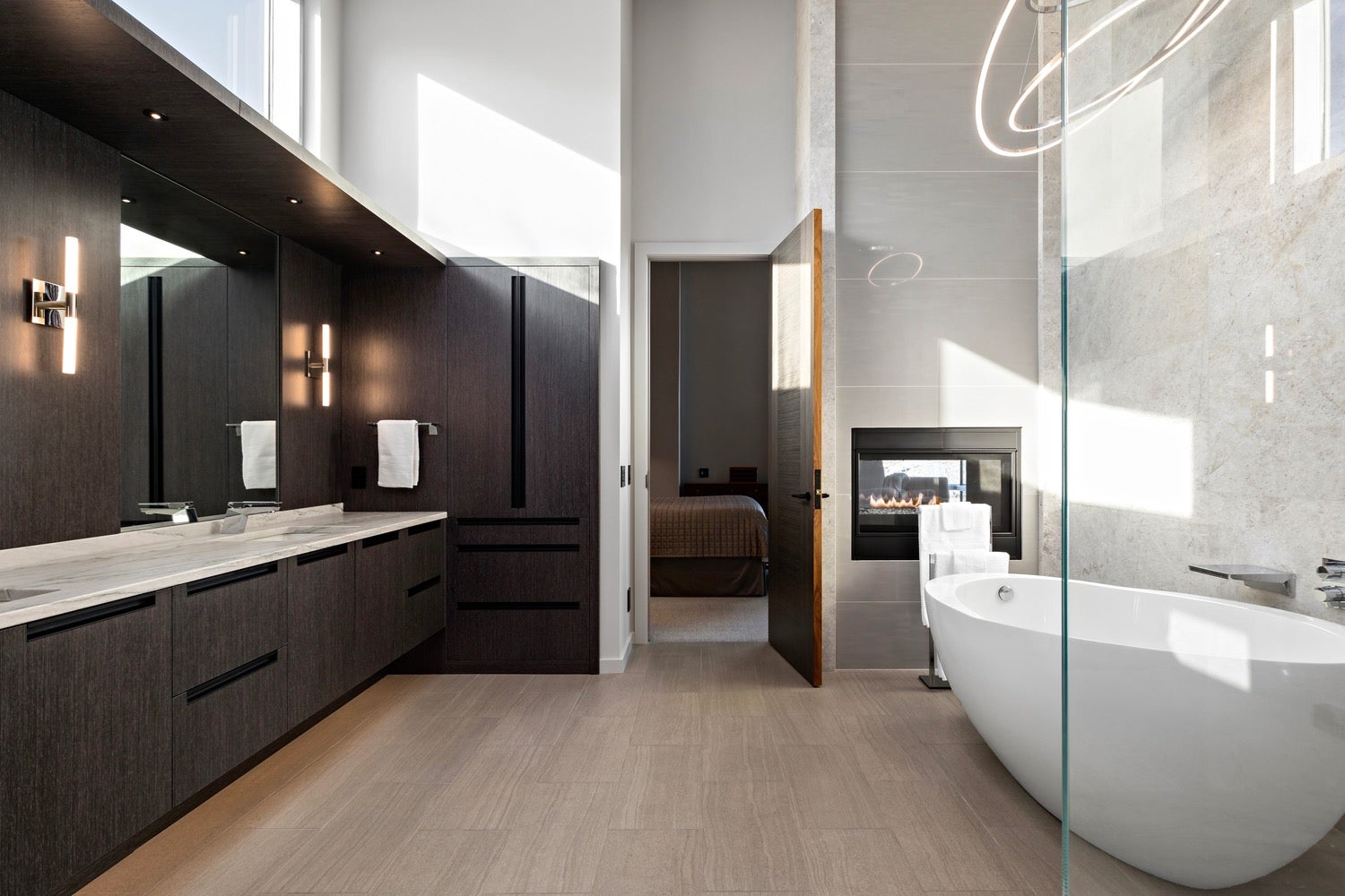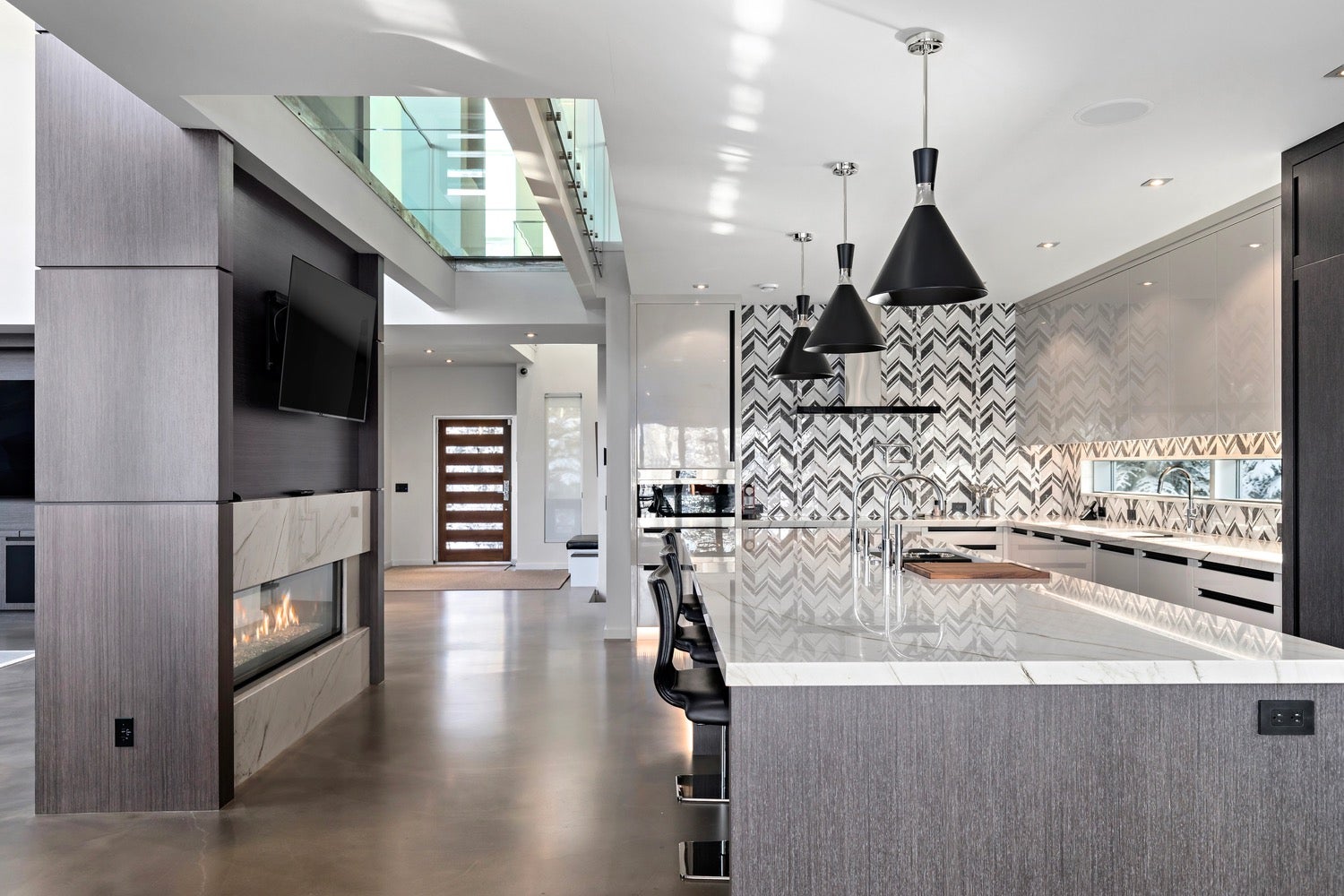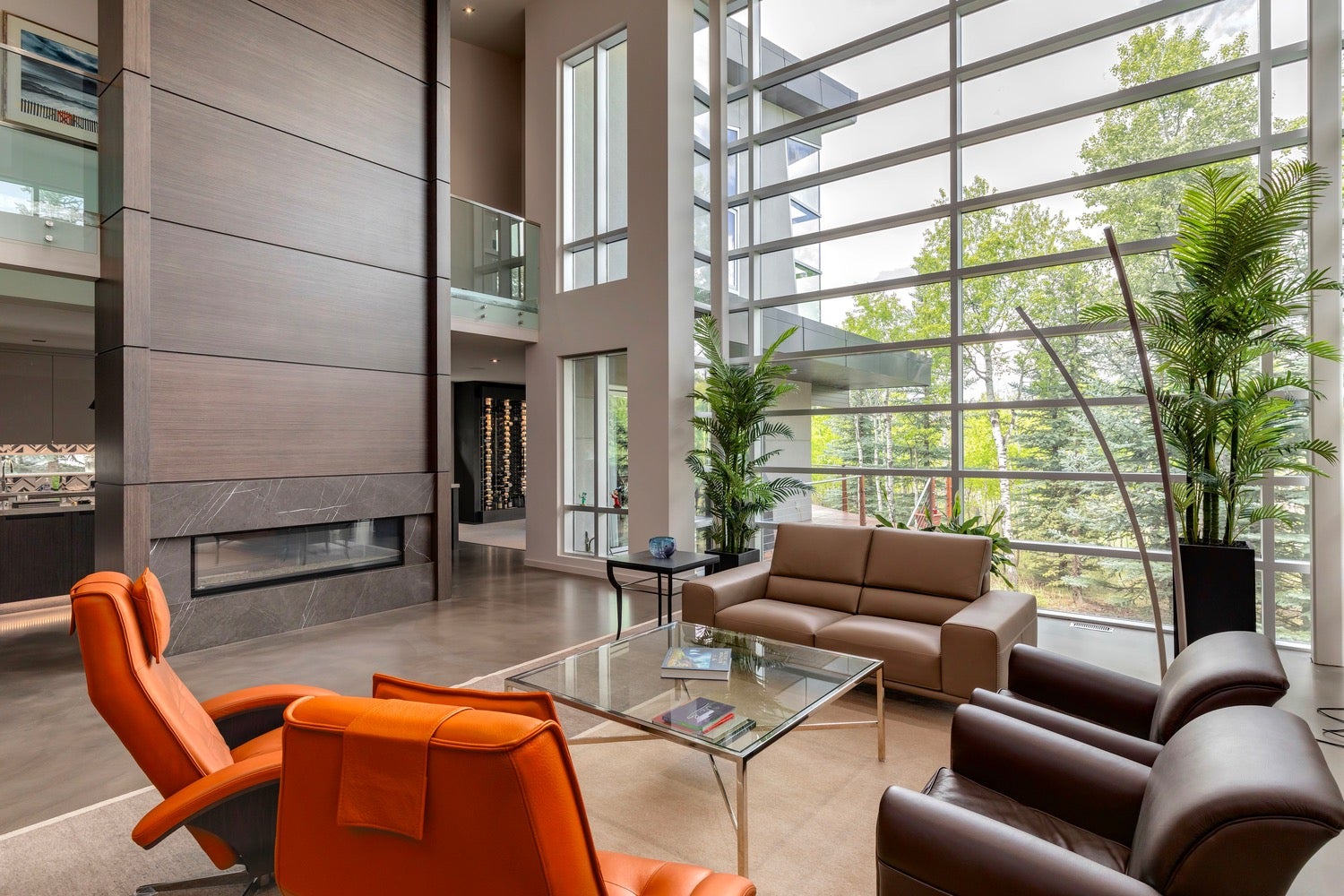 Experience Unparalleled Luxury: A Masterpiece of Design and Craftsmanship. This isn't just a house; it's a statement. A testament to exquisite taste and meticulous attention to detail. Since 2015, this remarkable residence has undergone a complete transformation, with well over one million dollars invested in interior and exterior tailoring, all orchestrated by the renowned Douglas Cridland and Associates. The result? A home that seamlessly blends modern elegance with unparalleled comfort, creating a sanctuary you'll be proud to call your own. Step inside and be greeted by the warmth and sophistication of stained radiant heated concrete floors, setting the stage for the home's contemporary design. Substantial solid core wood veneer doors, adorned with sleek black anodized Baldwin hardware, open to reveal a world of meticulous craftsmanship. The chef's kitchen is a dream realized, equipped with top-of-the-line Wolf appliances, including an M Series oven, induction cooktop, warming drawer, and steam oven. A Grohe Blue chilled and sparkling filtration system, Sub-Zero refrigerator and freezer, two chilled vegetable drawers, two Cove dishwashers, and Galley culinary sinks ensure effortless entertaining, while a double-sided fireplace, anchored by a 55" 4K TV, provides warmth and entertainment. The dining area, bathed in natural light from expansive Nana Walls, seamlessly connects to the outdoors. A custom-crafted wine storage unit, with a 200+ bottle capacity, showcases your collection. The living room invites relaxation with soaring ceilings and expansive windows that frame serene views of the surrounding forest. A Denca entertainment center, featuring an 85" 4K cinematic display and a meticulously calibrated high-fidelity audio system, seamlessly integrates with the Control4 smart home system, elevating the space to a haven of discerning entertainment. Ascend the striking open-tread staircase and transition across the custom glass walkway creating an unforgettable element of architectural intrigue while leading to the luxurious primary wing which is truly an escape within itself. Two further bedrooms and a meticulously designed shared bathroom compliment the upper level while the lower levels unveil a curated selection of premier home amenities: a substantial fitness center, a comprehensive laundry suite, a private guest quarter, and a bespoke bar and cinema. Complete with a meticulously organized car salon that can accommodate a car lift for a total of 6 cars, and a striking revitalized exterior envelope. This exceptional residence is more than just a home; it's an embodiment of refined living, where every detail has been carefully considered to create a sanctuary of luxury, comfort, and enduring style.