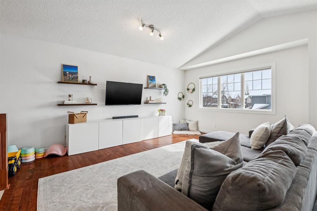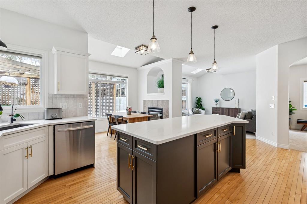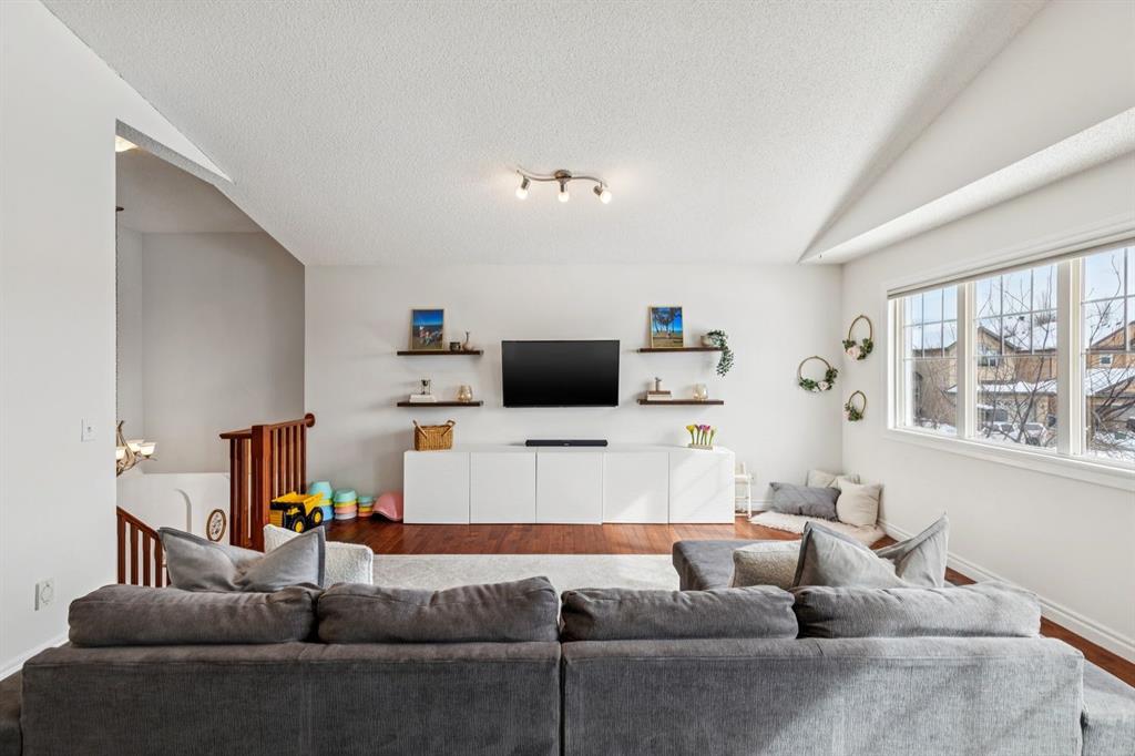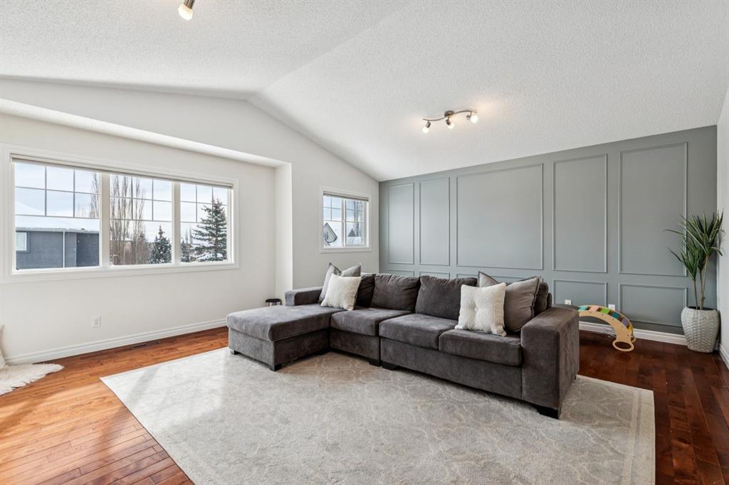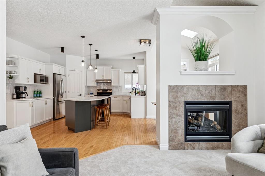 Presenting a RARE OPPORTUNITY to own within this sought-after corner of Tuscany Estates at an EXCEPTIONAL PRICE POINT! Nestled within a private and exclusive enclave, this magnificent residence offers a rare combination of sophisticated design and thoughtful functionality. Situated on a quiet, premier street with convenient access to scenic walking paths, local schools, and the Lynx Ridge Golf Course, the home welcomes you with a sense of arrival and quiet luxury. The bright, open-concept main floor is defined by soaring nine-foot ceilings and three architectural skylights that invite an abundance of natural light to dance across the hardwood floors. At the heart of the home, an updated gourmet kitchen featuring sleek quartz countertops, updated maple cabinetry, and new light fixtures flows seamlessly into the dining room and a generous living area. This expansive great room is anchored by a dramatic double-sided fireplace, creating a warm and inviting atmosphere for gatherings of any size. The main level is further enhanced by a large, private office—ideal for the remote professional—as well as a functional mudroom and a stylish two-piece powder room. As you ascend to the upper level, you are met with a sprawling, east-facing bonus room characterized by vaulted ceilings and custom-paneled wainscoting, offering a versatile space for family relaxation. The primary retreat serves as a true sanctuary, boasting large west-facing windows that capture the evening sun, a spacious walk-in closet, and a spa-inspired five-piece ensuite complete with dual vanities and a deep soaker tub. Two additional well-appointed bedrooms and a full four-piece bathroom complete this floor, ensuring ample space for family or guests. The recently finished lower level expands the living space significantly, providing a massive recreation room, two substantial storage areas, and the flexibility to easily add a fourth bedroom. Every detail of this home has been meticulously maintained and upgraded for modern peace of mind, including a brand-new roof (2024). The experience continues outdoors in the mature, west-facing backyard—a professionally landscaped oasis featuring a secluded deck and a brick patio perfect for evening firepits or alfresco dining. This is an exceptional opportunity to own a move-in-ready home that harmonizes luxury with the vibrant, outdoor-centric lifestyle of Tuscany. Experience the quality firsthand and schedule your private viewing today. Click the 3D open house tour for a better look!