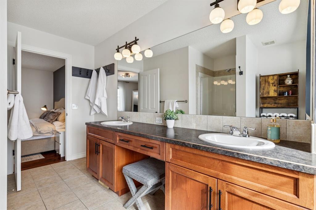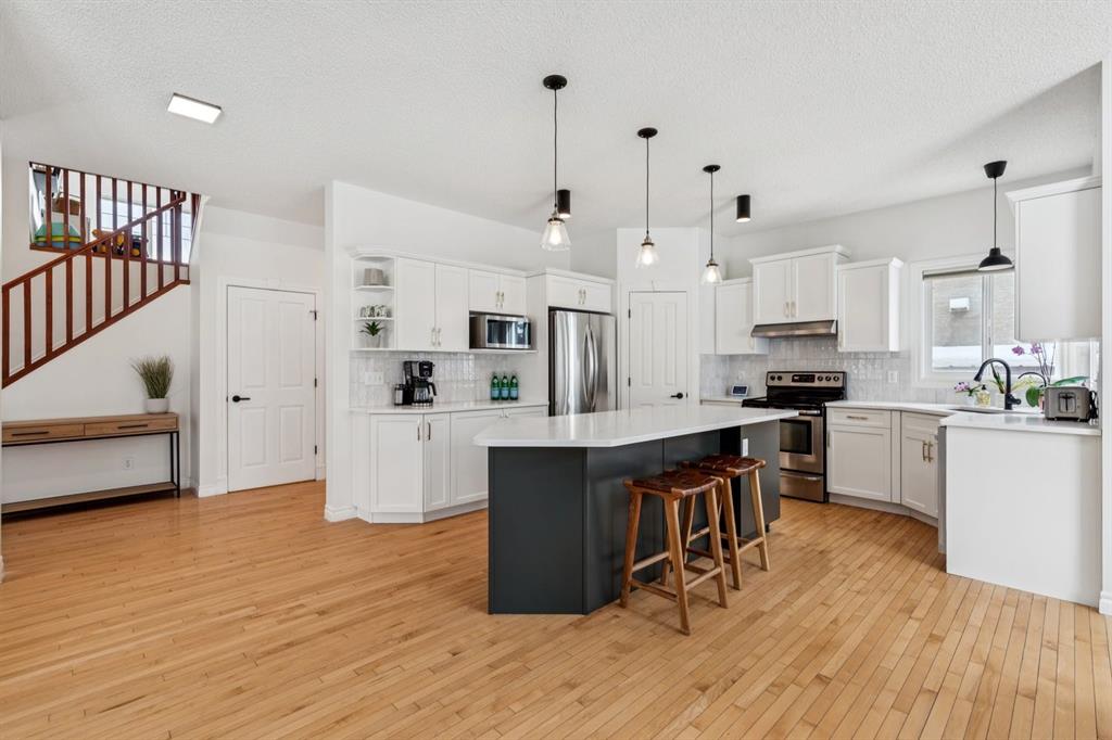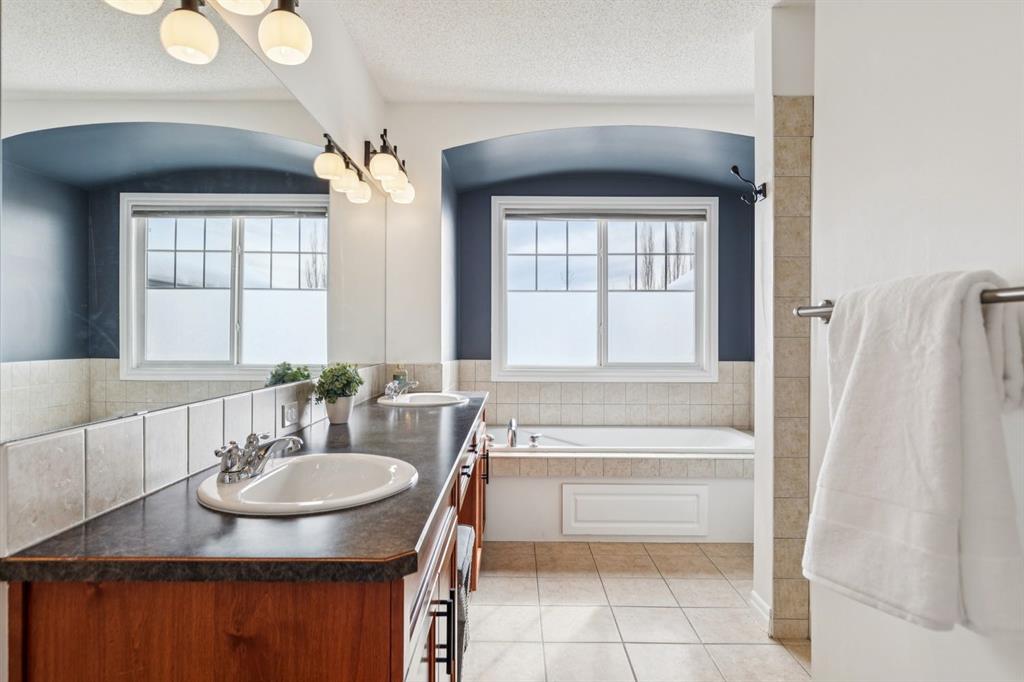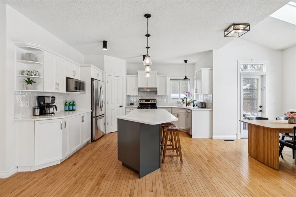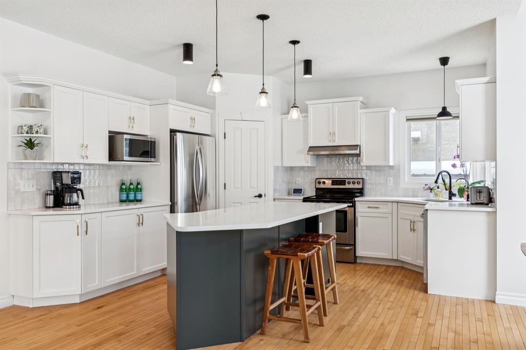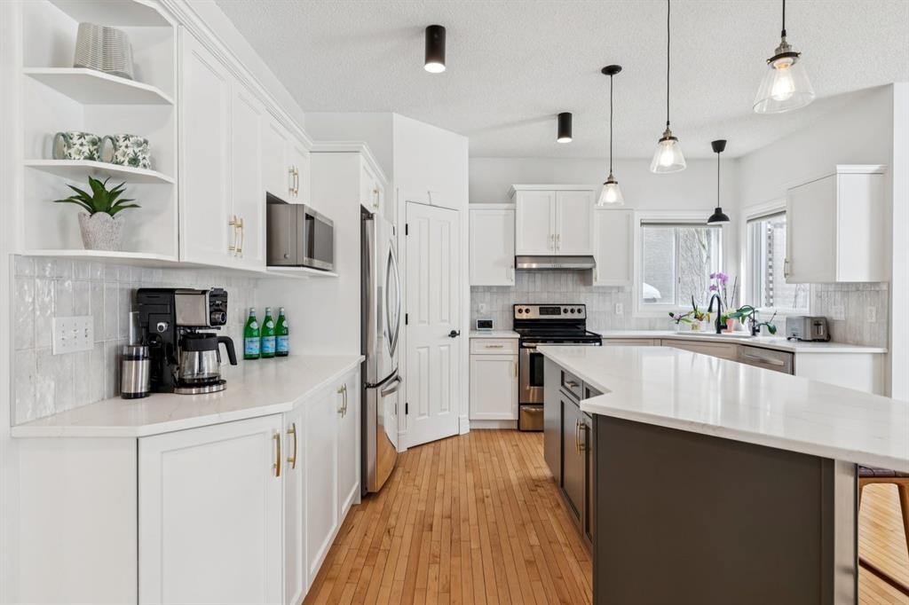 Presenting a RARE OPPORTUNITY to own within this sought-after corner of Tuscany Estates at an EXCEPTIONAL PRICE POINT! Nestled within a private and exclusive enclave, this magnificent residence offers a rare combination of sophisticated design and thoughtful functionality. Situated on a quiet, premier street with convenient access to scenic walking paths, local schools, and the Lynx Ridge Golf Course, the home welcomes you with a sense of arrival and quiet luxury. The bright, open-concept main floor is defined by soaring nine-foot ceilings and three architectural skylights that invite an abundance of natural light to dance across the hardwood floors. At the heart of the home, an updated gourmet kitchen featuring sleek quartz countertops, updated maple cabinetry, and new light fixtures flows seamlessly into the dining room and a generous living area. This expansive great room is anchored by a dramatic double-sided fireplace, creating a warm and inviting atmosphere for gatherings of any size. The main level is further enhanced by a large, private office—ideal for the remote professional—as well as a functional mudroom and a stylish two-piece powder room. As you ascend to the upper level, you are met with a sprawling, east-facing bonus room characterized by vaulted ceilings and custom-paneled wainscoting, offering a versatile space for family relaxation. The primary retreat serves as a true sanctuary, boasting large west-facing windows that capture the evening sun, a spacious walk-in closet, and a spa-inspired five-piece ensuite complete with dual vanities and a deep soaker tub. Two additional well-appointed bedrooms and a full four-piece bathroom complete this floor, ensuring ample space for family or guests. The recently finished lower level expands the living space significantly, providing a massive recreation room, two substantial storage areas, and the flexibility to easily add a fourth bedroom. Every detail of this home has been meticulously maintained and upgraded for modern peace of mind, including a brand-new roof (2024). The experience continues outdoors in the mature, west-facing backyard—a professionally landscaped oasis featuring a secluded deck and a brick patio perfect for evening firepits or alfresco dining. This is an exceptional opportunity to own a move-in-ready home that harmonizes luxury with the vibrant, outdoor-centric lifestyle of Tuscany. Experience the quality firsthand and schedule your private viewing today. Click the 3D open house tour for a better look!